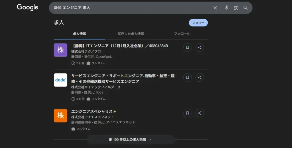 Googleが提供する求人検索プラットフォームで、求人サイトのように見えますが、実際は Googleの検索結果に表示される求人専用機能 です。